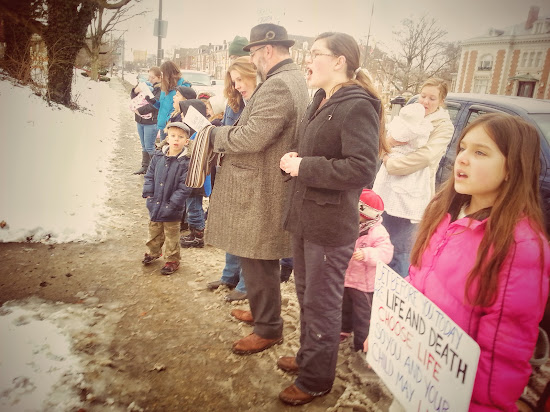 Due to weather, sickness and people being out of town, we didn't have quite the turn out as last time. But it was still glorious. We had kids out there singing and holding signs!
